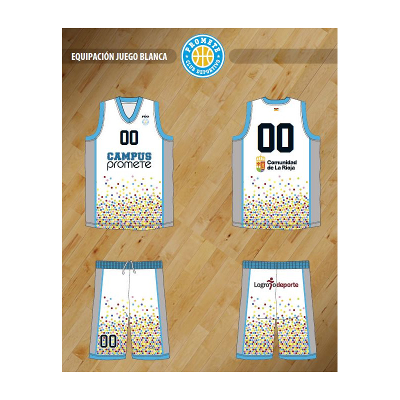 Equipación de juego blanca compuesta por una camiseta de tirantes y un pantalón corto con cintura elástica y cordón.